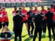 Trener Widzewa Łódź chwali drużynę po treningu..